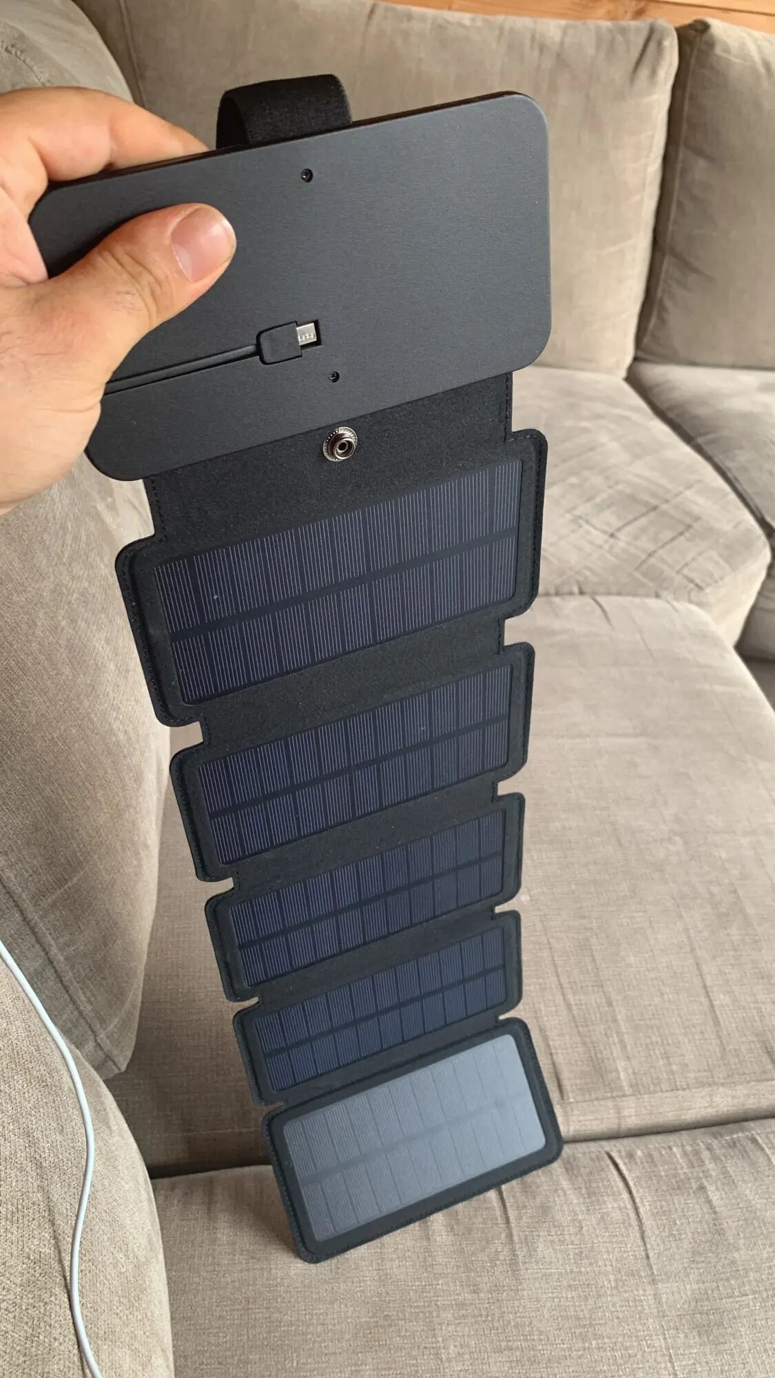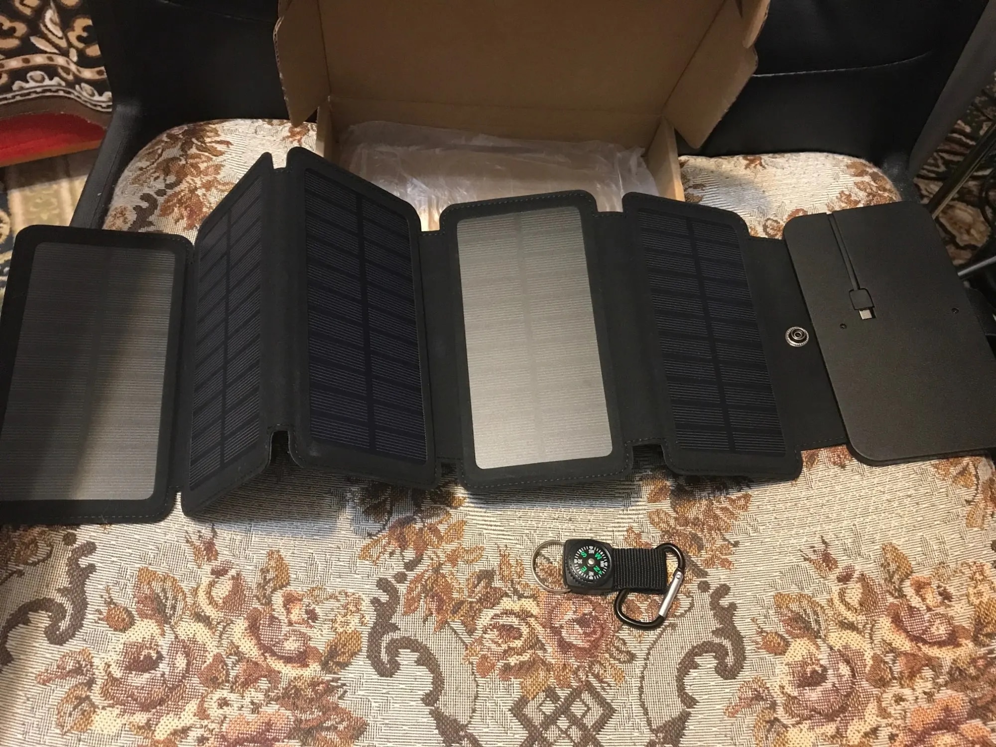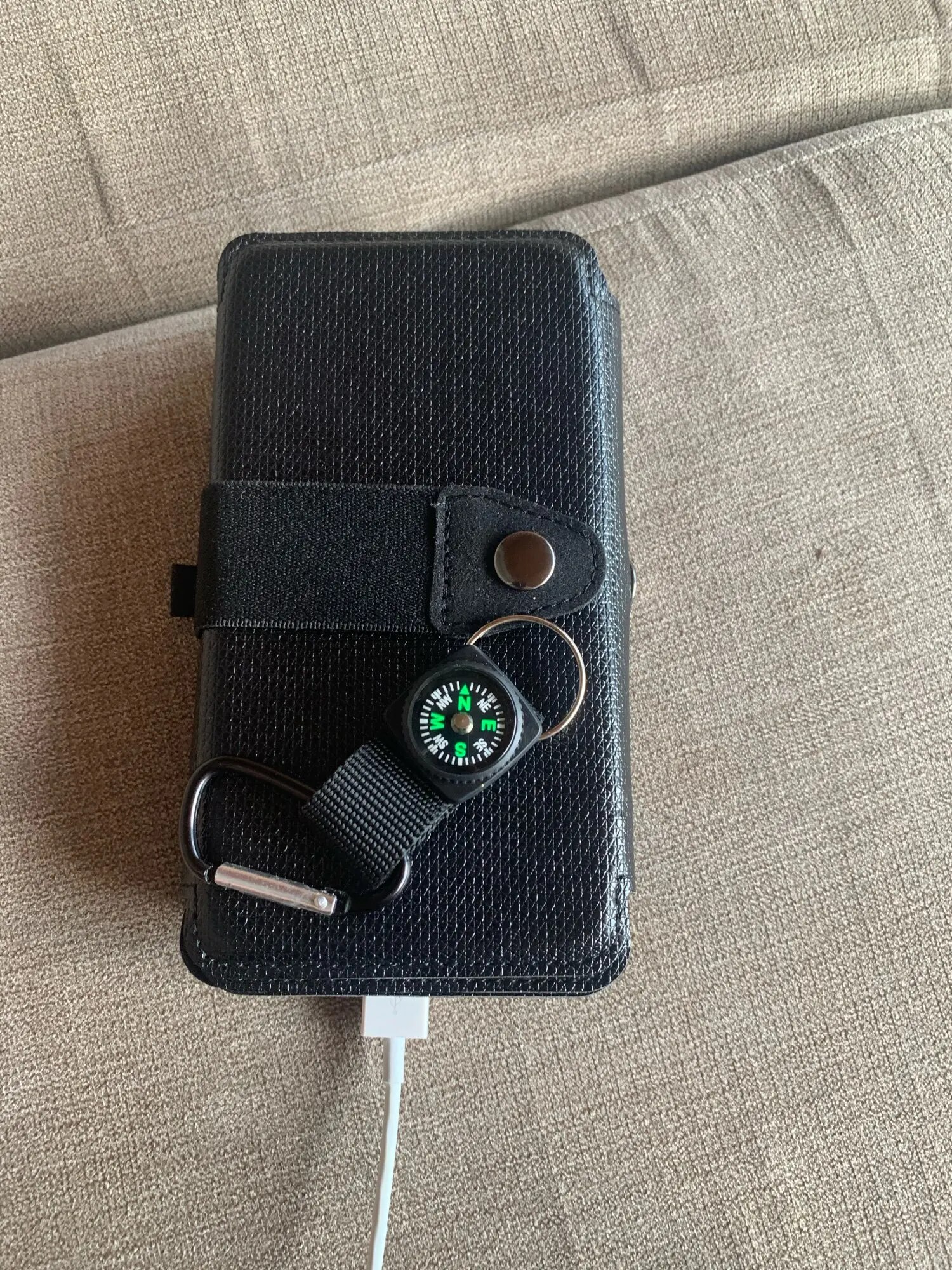 Excelente carregador Solar. Tem bússola e fecho gancho para prender, numa mochila por exemplo. Muito útil! Recomendo.